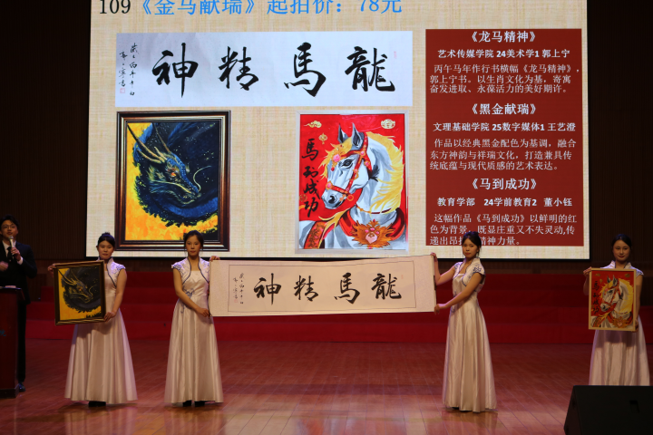 本次拍卖会共收到师生爱心作品600件,经精心遴选,70件优秀作品登上竞拍台,涵盖书画、手作、非遗剪纸等多个门类。一幅幅山水画作墨彩寄情,一件件文创好物饱含新春祝福,一张张剪纸作品彰显民族精神……每一件拍品背后,都聚着创作者的心意与善意。竞拍环节,师生们频频举牌,气氛热烈而温馨,大家用实际行动为公益助力,让温暖与善意在一次次落槌中传递。